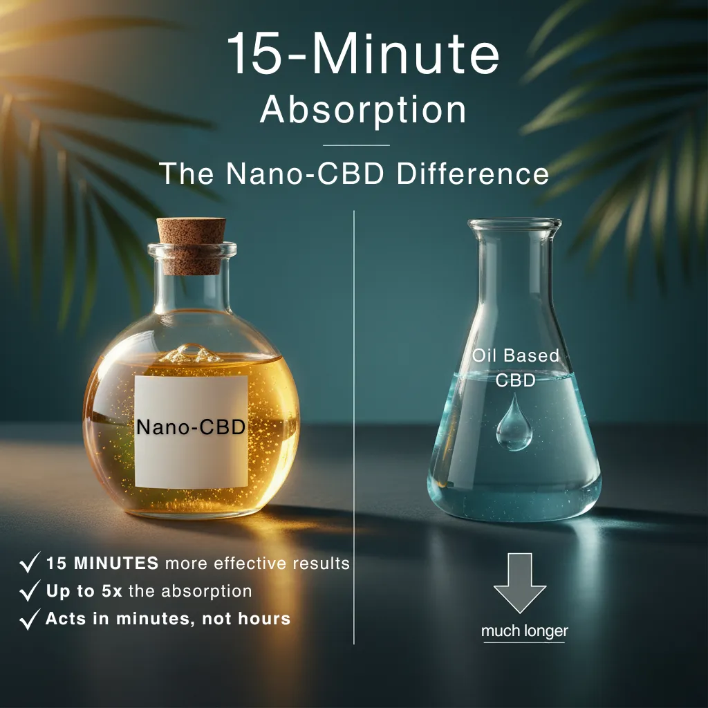 Think of it as "fast-acting." Our patented Nano Technology breaks the CBD and other hemp cannabinoid extracts into tiny, water-soluble particles. This allows your body to absorb them much faster and more efficiently. You'll feel the calming or energizing effects in minutes, not an hour, making every sip more effective.